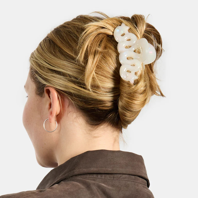 This medium-sized loopy hair claw is super versatile and works for all hair types and textures. Use for full twists or buns on fine to medium hair. Use for half updos with medium to thick hair.