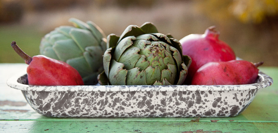 Our enamelware Small Open Roasters are perfect for all those recipes you have up your sleeve. Roast vegetables, cook side dishes, even bake a peach cobbler. The versatility is endless.